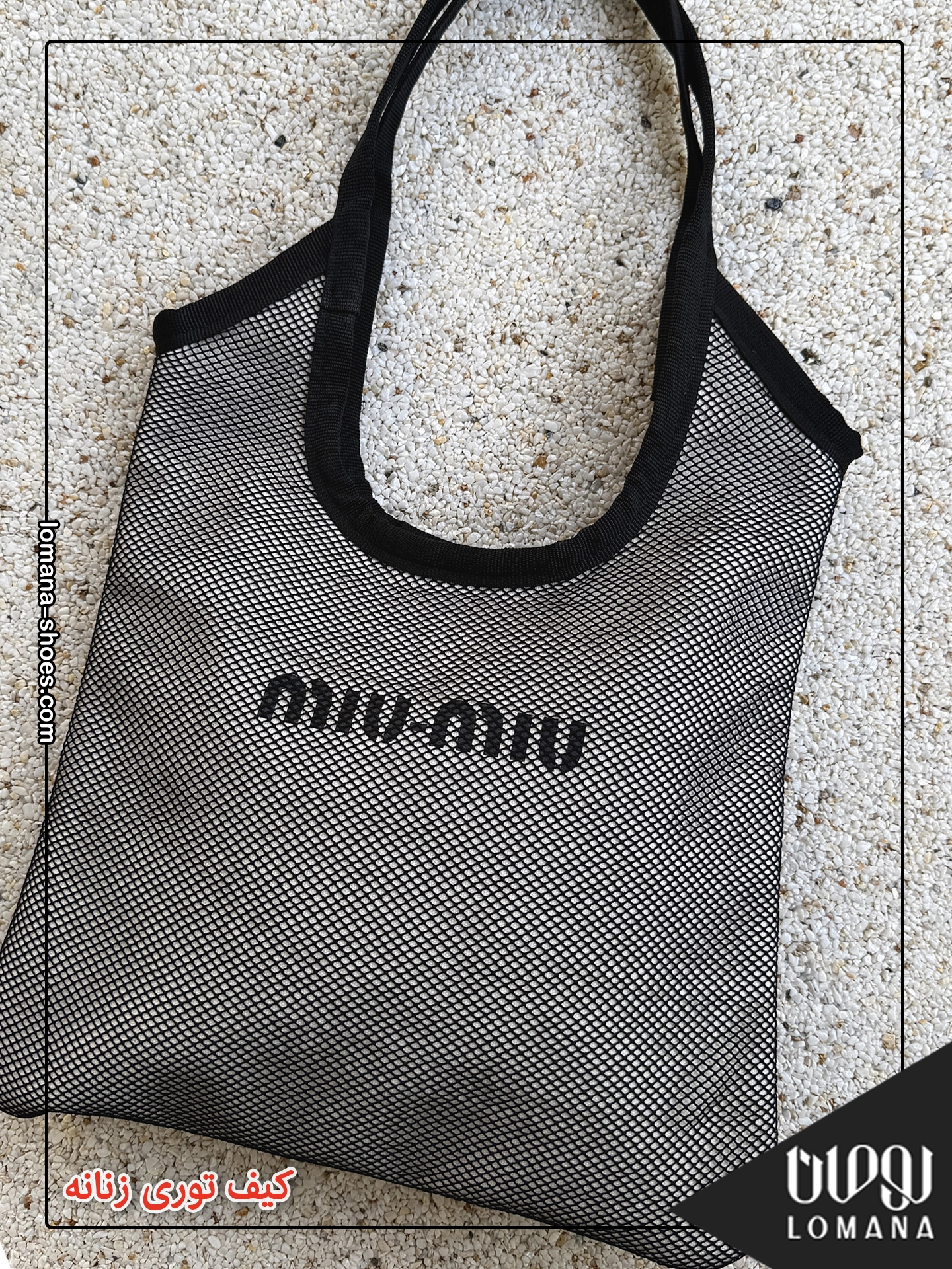 👜 کیف پیشنهادی : کیف دستی پارچهای – توری با طراحی برنددار ( مانند مدل مشکی موجود در تصویر )